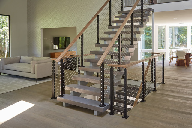 Open Concept Contemporary Stairs With Steal Railing Contemporary