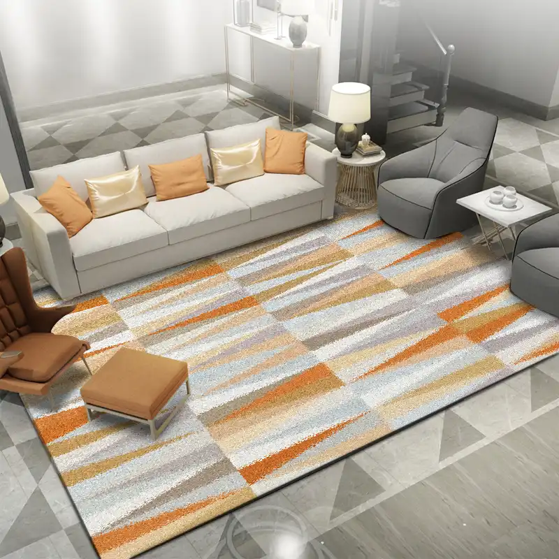 Nordic Minimalist Grey Orange Pattern Area Rug Living Room Sofa