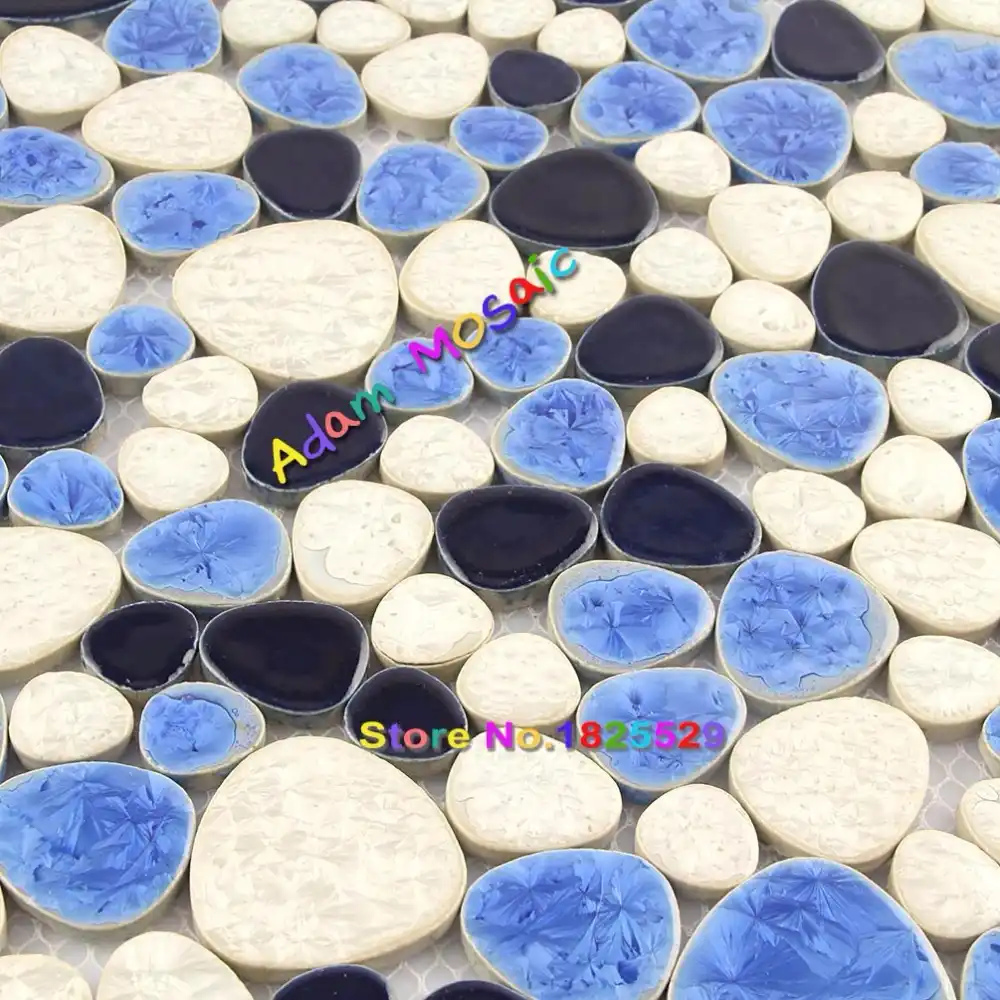 Glazed Porcelain Pebble Mosaic Tiles Designs Blue Ceramic Wall