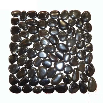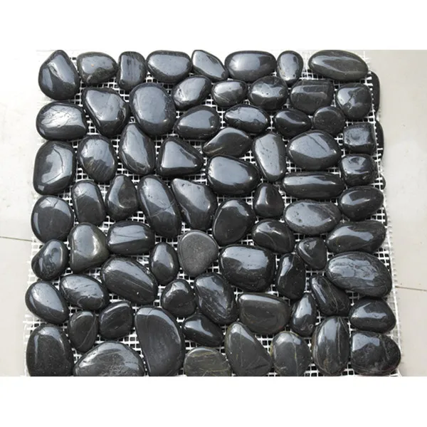 Natural Polished Flat Pebble Black Stone Mesh Mosaic Tiles For