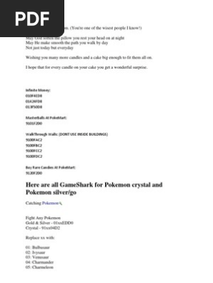 Pokemon Crystal Cheats Gameshark Codes For Game Boy Emulator