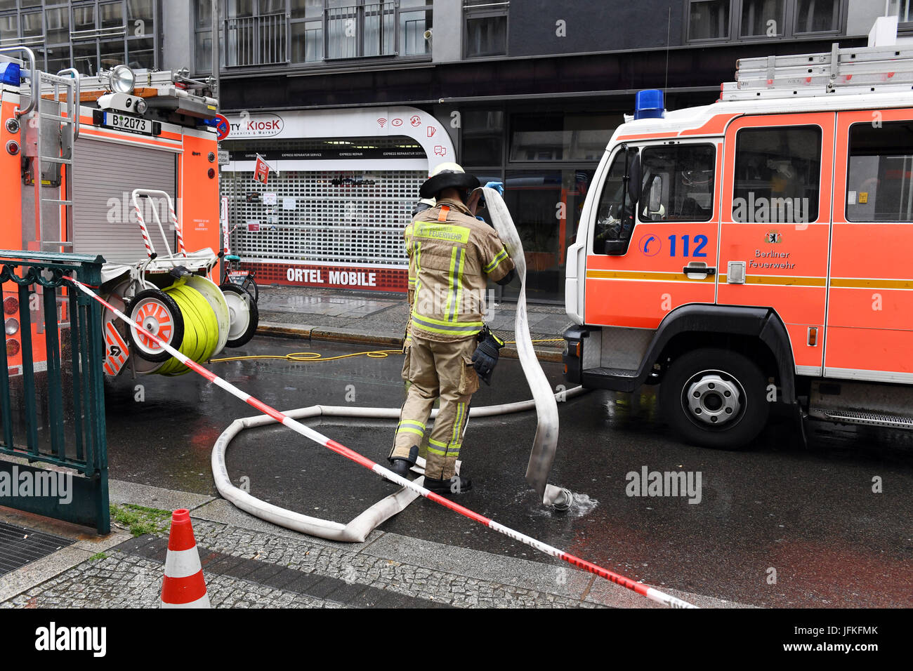 Berlin Germany 30th June 2017 Firefighters Pump Water Out Of A