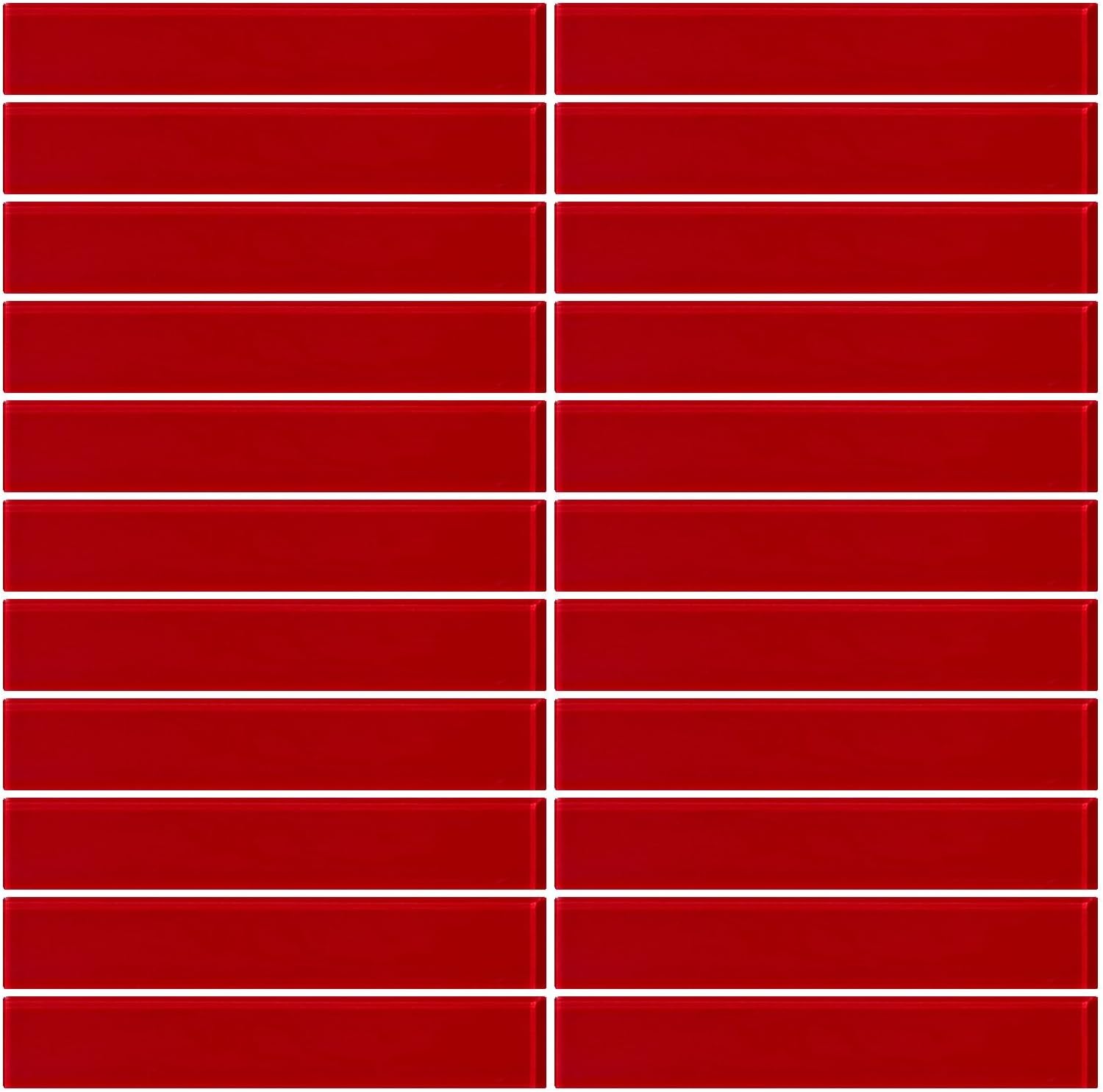 Glossy Hot Red Subway Glass Mosaic Tiles For Bathroom And Kitchen Walls Kitchen Backsplashes By Vogue Tile Amazon Com