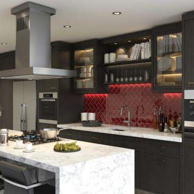 Champagne Glass Subway Tile Kitchen Backsplash With Dark Cabinets Tilehub