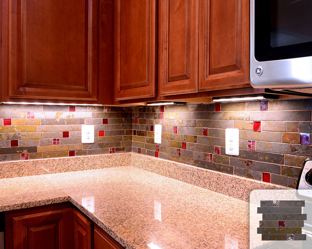 Rusty Slate Subway Mosaic Red Glass Kitchen Backsplash Tile Traditional Kitchen Dc Metro By Backsplash