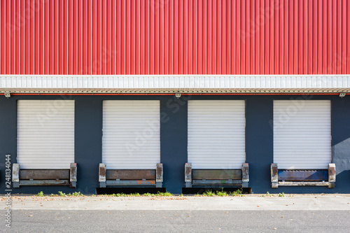 Front View Of A Truck Loading Dock At A Warehouse In The Suburbs