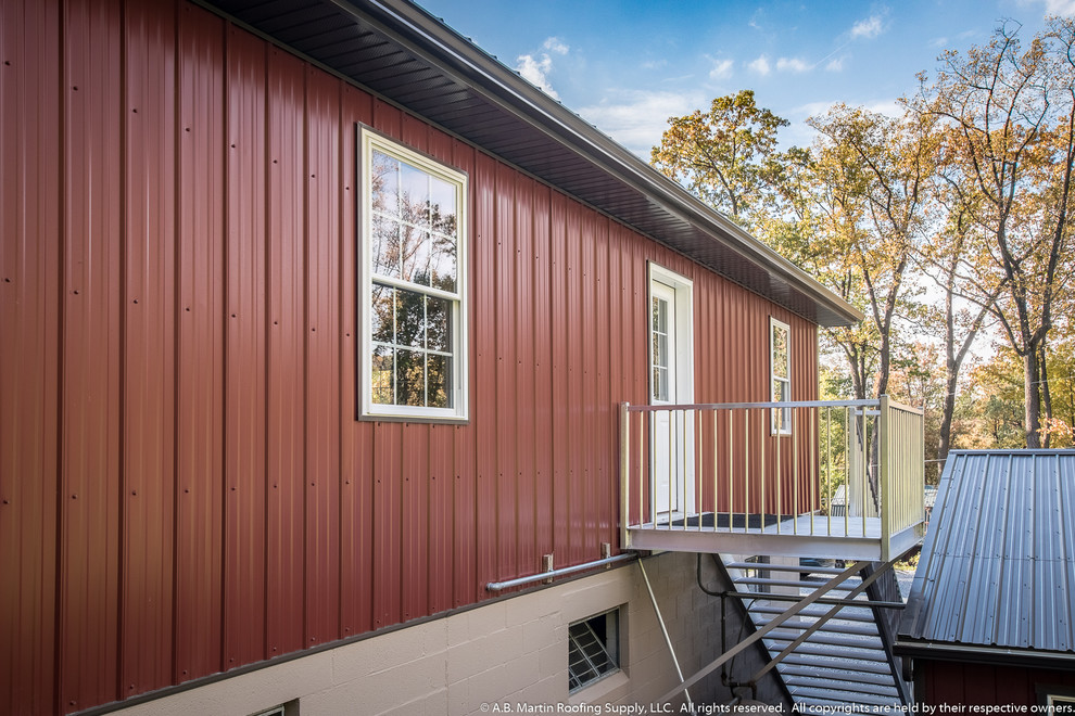 Rustic Red Siding And Burnished Slate Colored Roof Metal