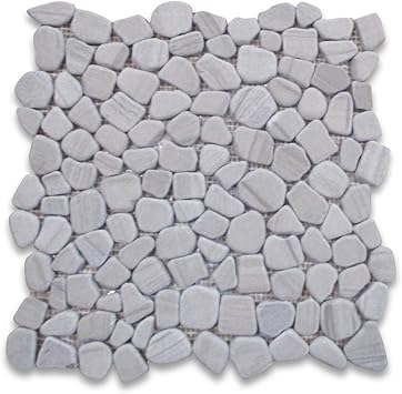 White Pebble Flat Tile 12 X12 River Rock Stone Mosaic Wall Shower