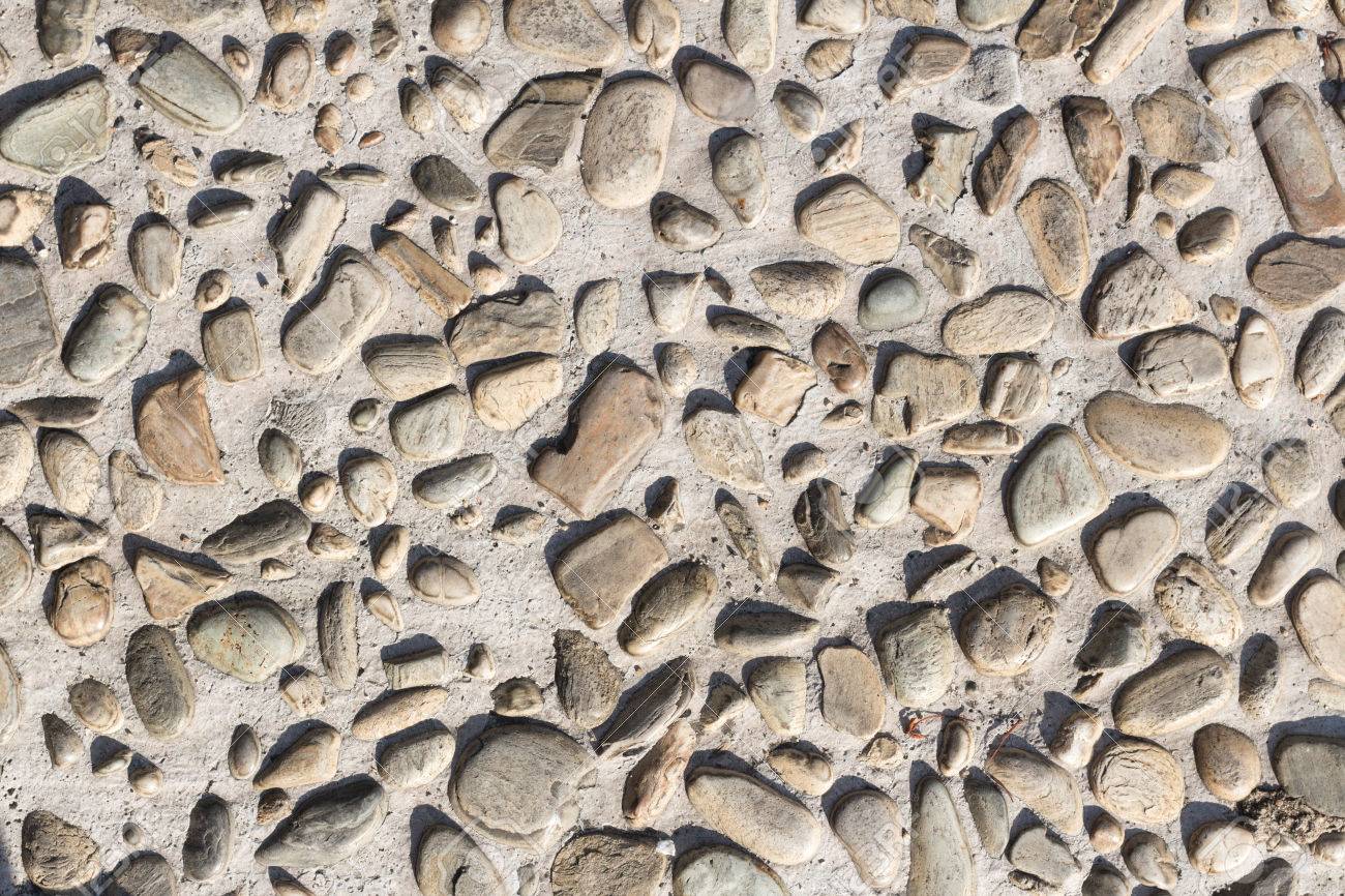 Close Up Of Natural River Stone Cladding Mosaic Tile Wall Old