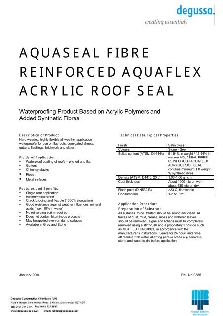 Aquaseal Fibre Reinforced Aquaflex Acrylic Roof Seal Arcon Supplies