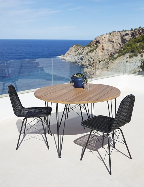 Runder Gartentisch Aus Massivem Akazienholz Und Schwarzem Metall
