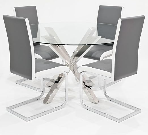 Febland Fw773933gy4 Crossley Clear Runder Glas Esstisch Und 4