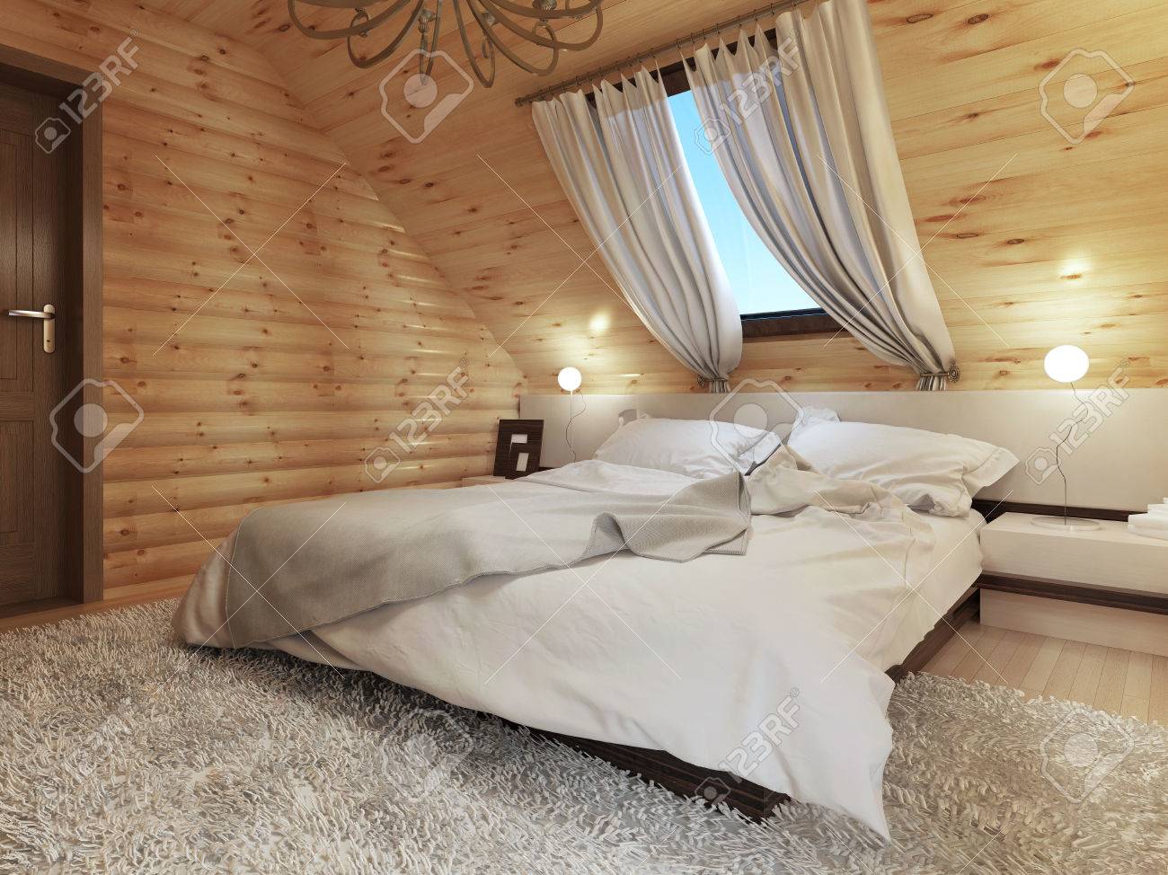 Schlafzimmer Inter In Einem Protokoll Auf Dem Dachboden Mit Einem