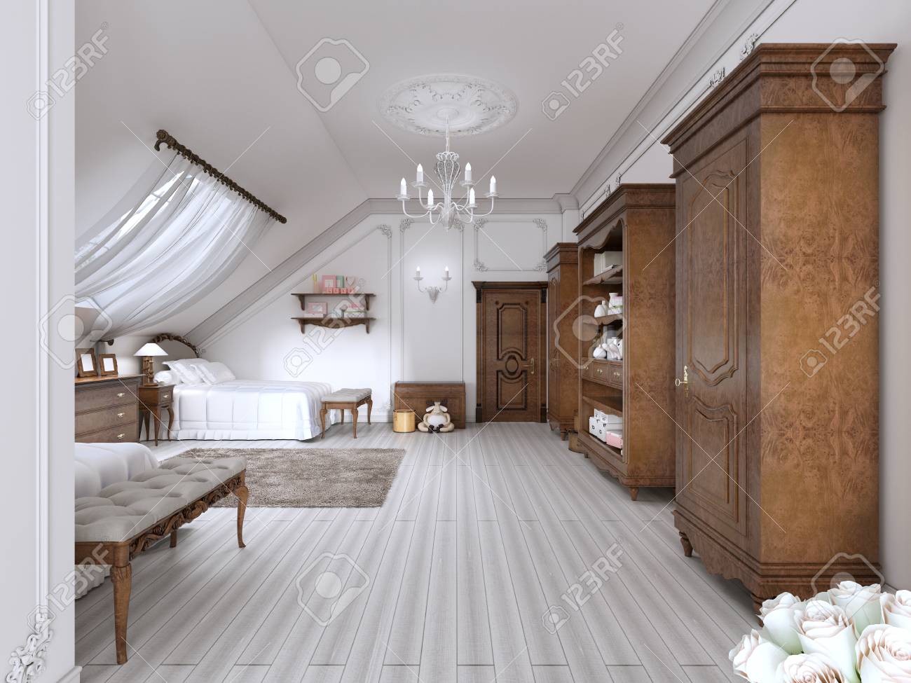 Schones Klassisches Schlafzimmer Der Wiedergabe 3d Nahe Grunem
