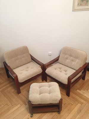 Mid Century Sessel Hocker 3er Set Bei Pamono Kaufen