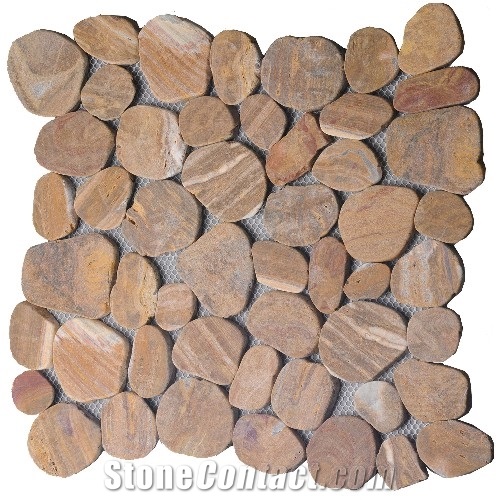 China Flat Natural Stone Sliced Pebble Mosaic Tile China Pebble