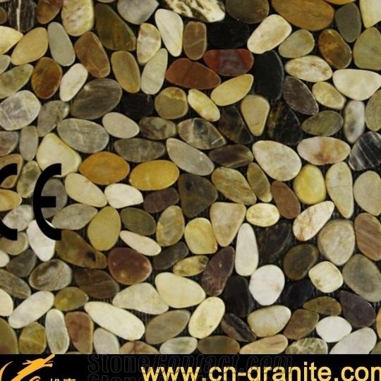 China High Polished Sliced Pebble Tile Mixed Color China Highly