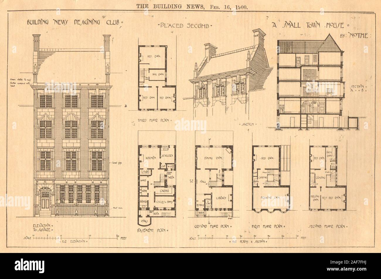 A Small Town House By Nothe Elevation To Square Basement Plan