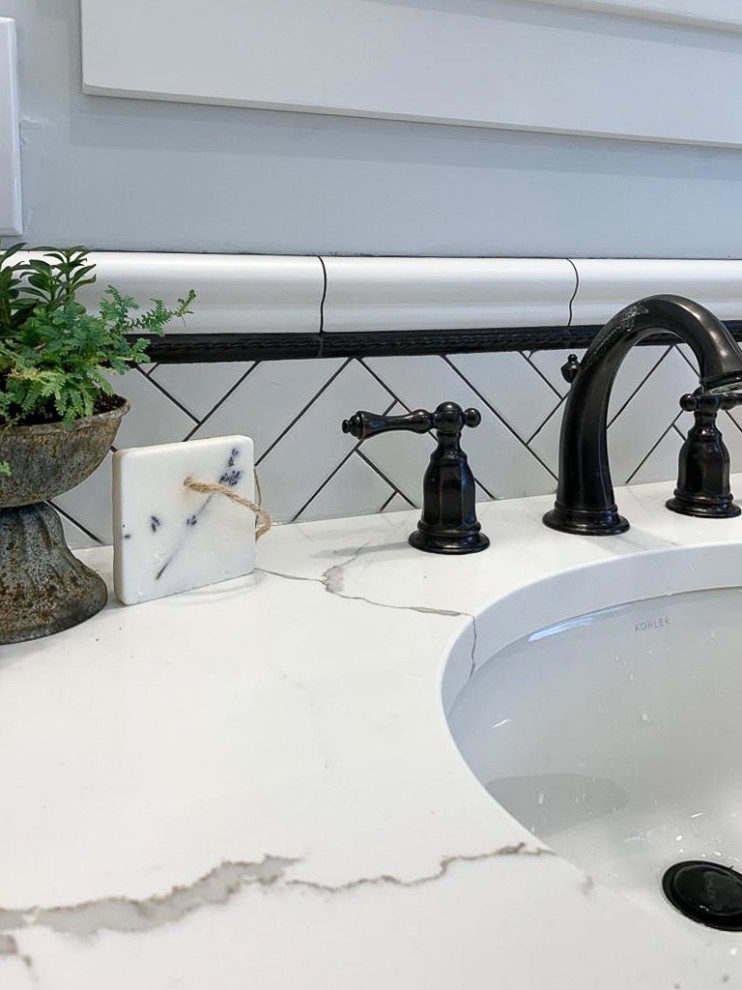 Herringbone White Subway Tile Backsplash Modern Bathroom