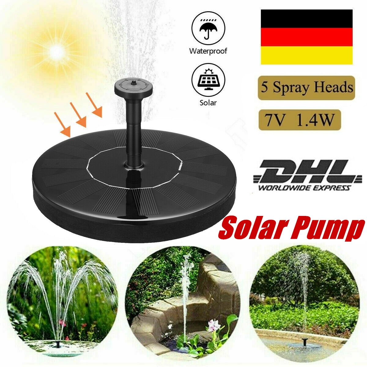 Solar Springbrunnen Fontane Teichpumpe Solarpumpe Brunnen