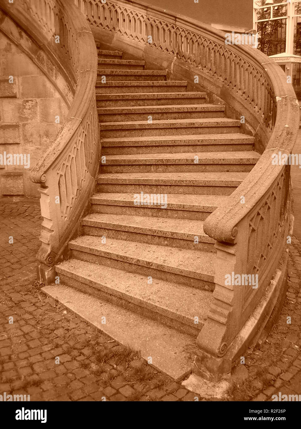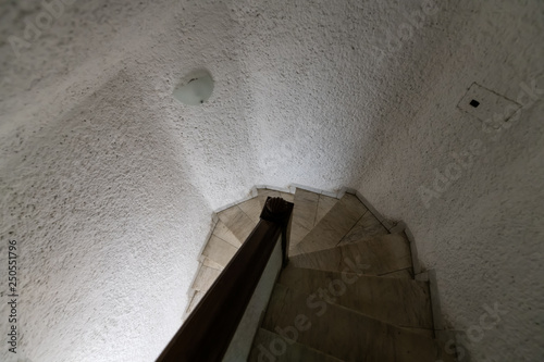 Taking The Dark Spiral Staircase Down To The Basement Stock Photo