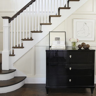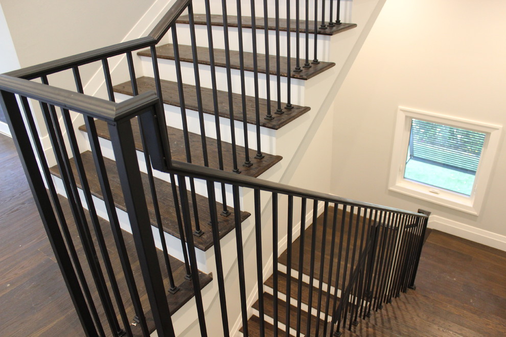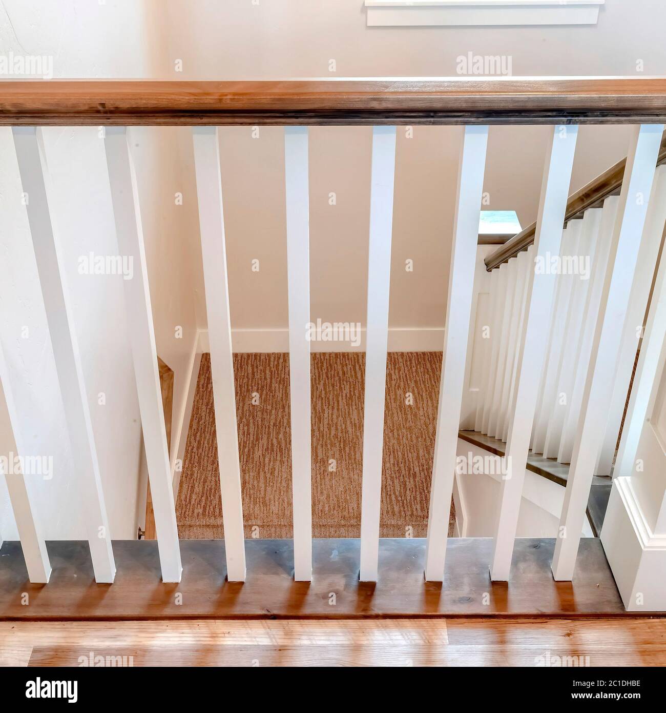 Square Indoor Staircase Of A Home With White Balusters Brown