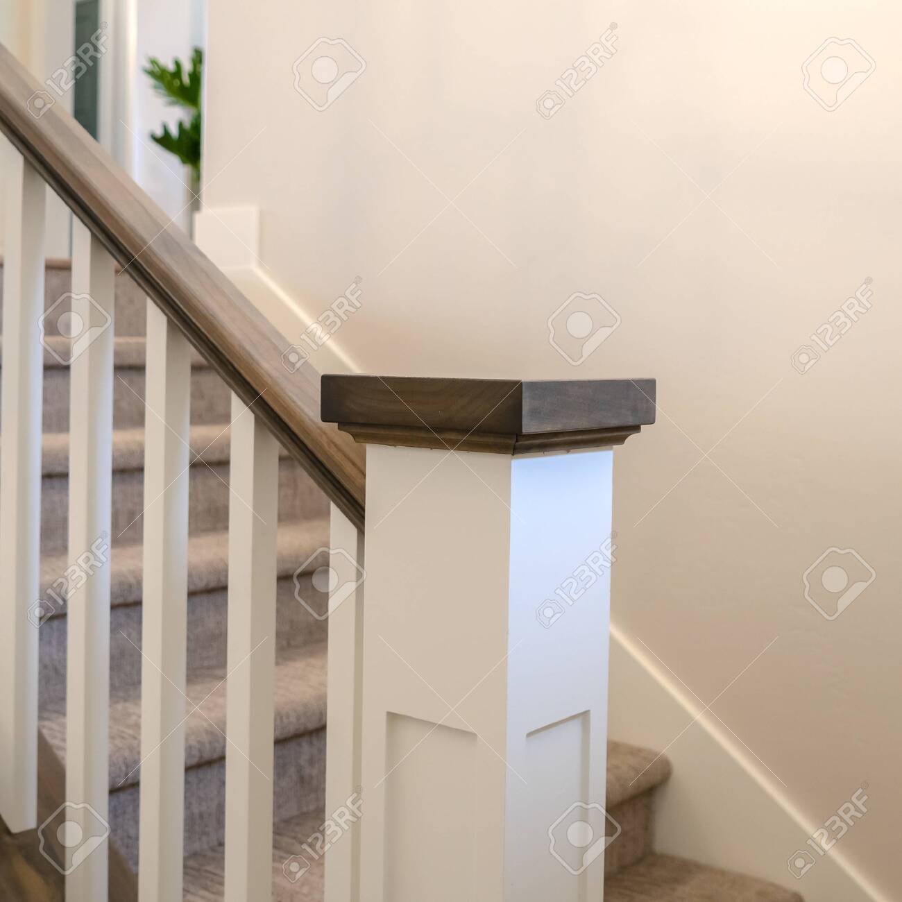 Square Crop White Wooden Baluster And Brown Handrail Of U Shaped