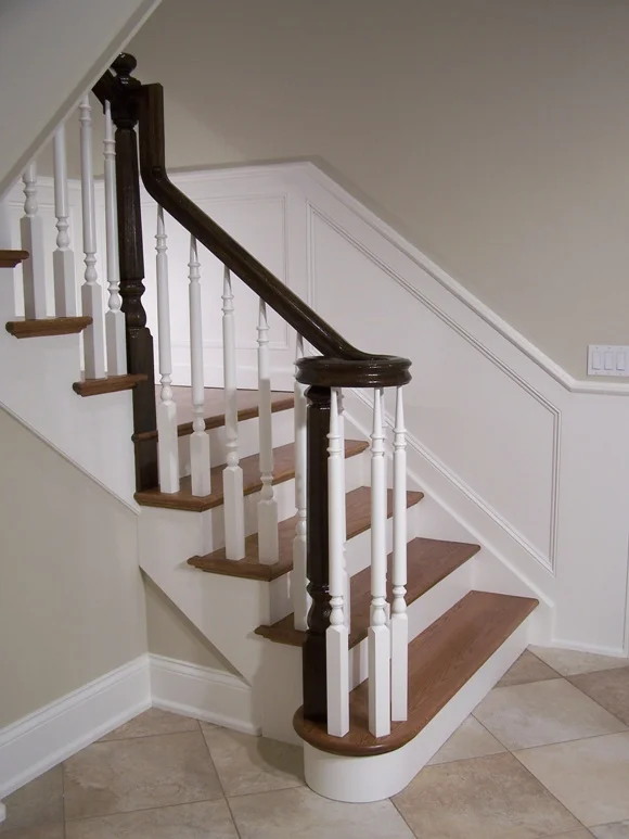 Square White Wooden Baluster And Brown Handrail Of U Shaped