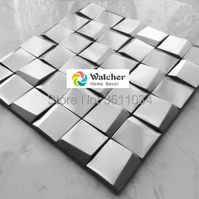Checkered Squares Stainless Steel Metal Mosaic Tile For Kitchen