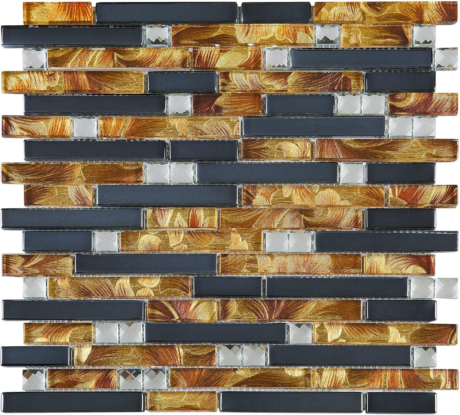 Gold Glass Mosaic Tile Backsplash Stainless Steel Metal Crystal Tile