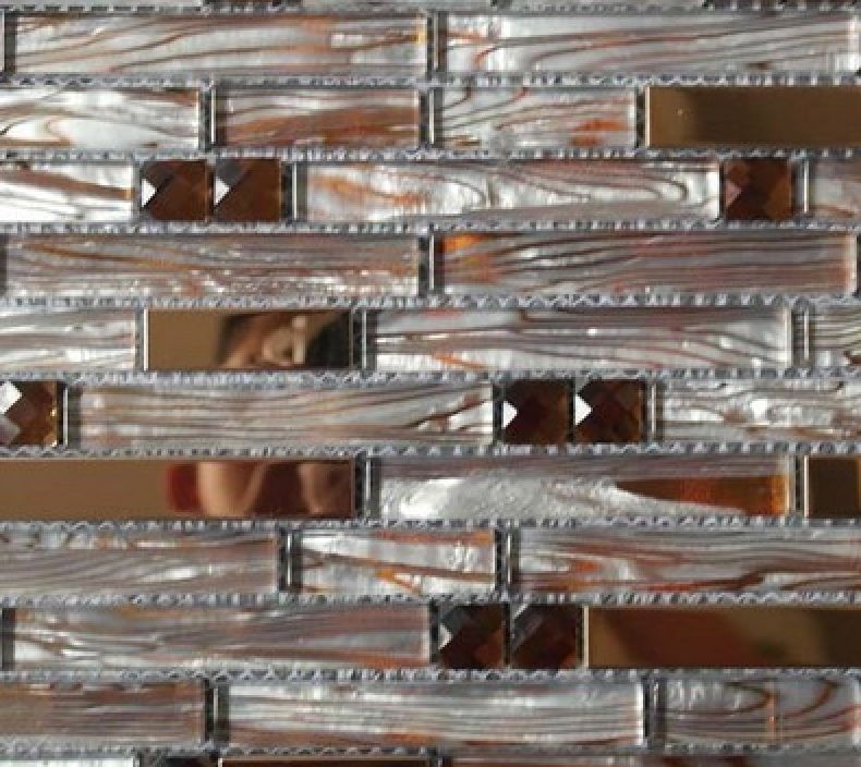 Brown Glass And Stainless Steel Silver Mosaic Wall Tile Backsplash
