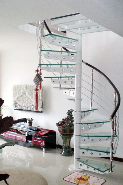 China Attic Interior Modern Design Glass Spiral Staircase For