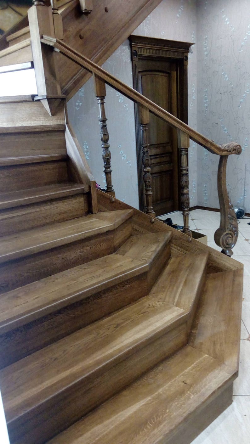 Stairs Made Of Natural Wood Solid Oak Staircase Carved Wood Etsy