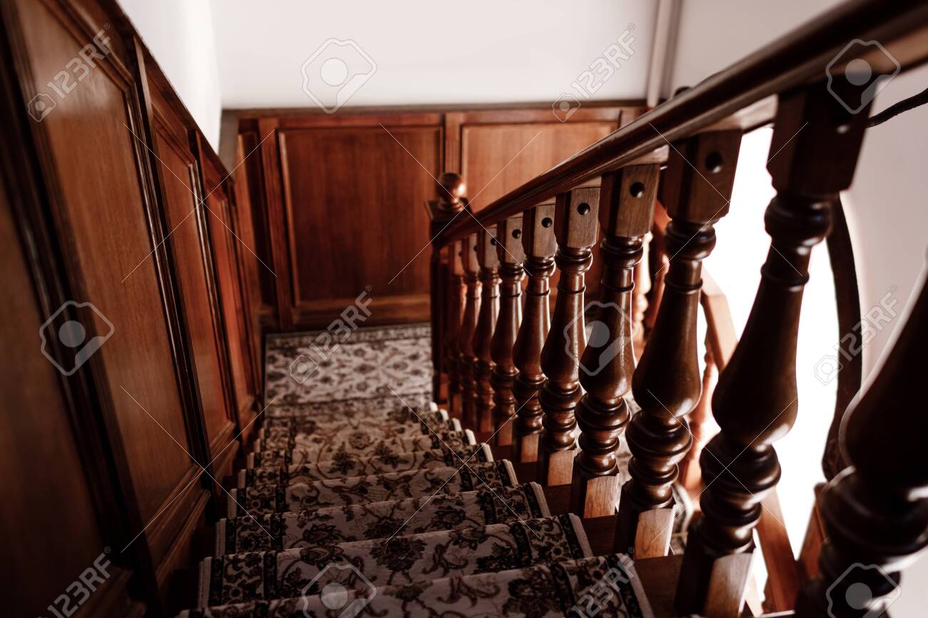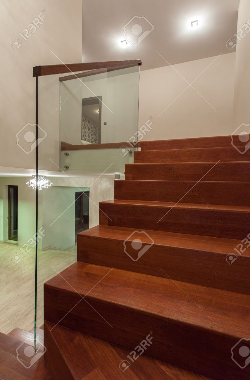 Interior Of Stairs Stairs Made Of Wood Inside The House Stock