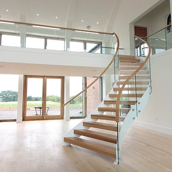 Bespoke Glass Staircase Cantilevered Wood String Stairs Made To