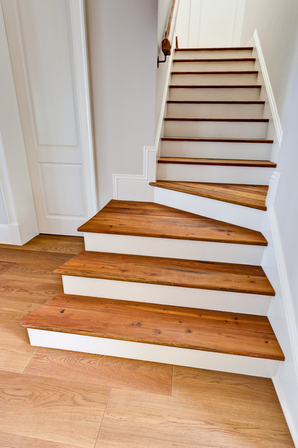 Custom Stairs Made With Old Reclaimed Pine Beams Craftsman