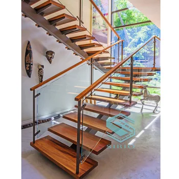 Oem Mild Steel Open Riser Staircase Stainless Steel Glass