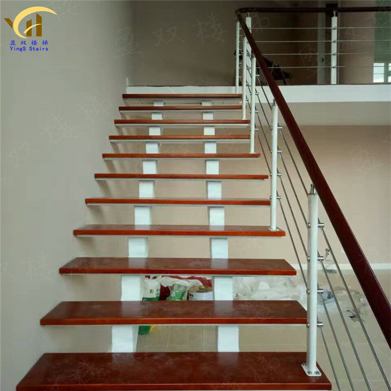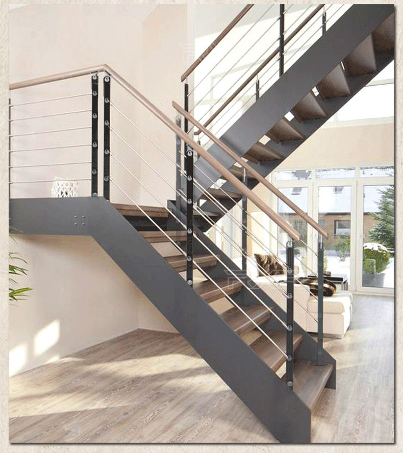 China Wire Railing Straight Steel Wood Stairs Design Double Beam