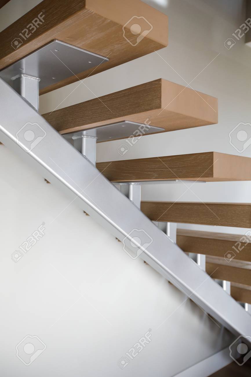 Modern Steel Staircase With Wooden Steps In A New Apartment In A