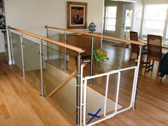 Wood Stairs And Stainless Steel Glass Railings Contemporary