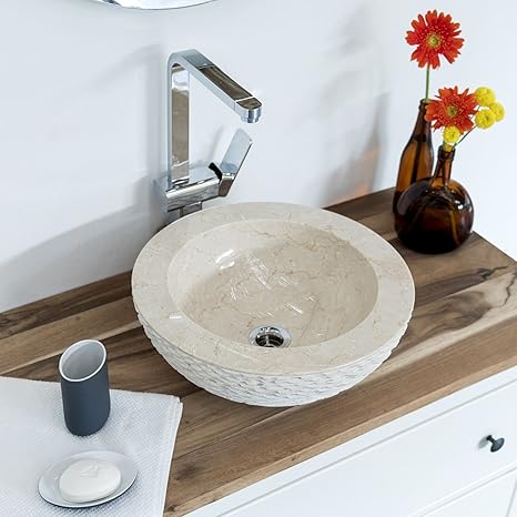 Wohnfreuden Marmor Waschbecken 33 Cm Creme Rund Aussen Geh