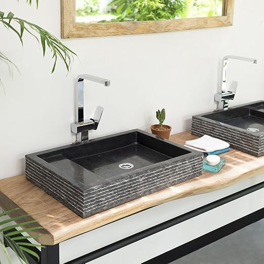 Wohnfreuden Marmor Natur Stein Waschbecken Samba 30 Cm Schwarz Bad