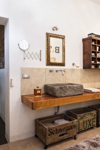 Steinwaschbecken Auf Nussbaumblock Bad Spiegel Bad