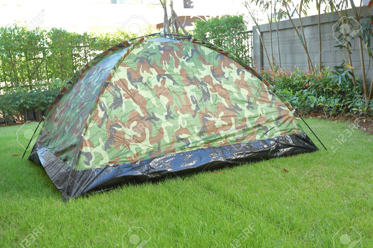 Tent Camping Wild Camouflage Style Design Of Backyard In Green