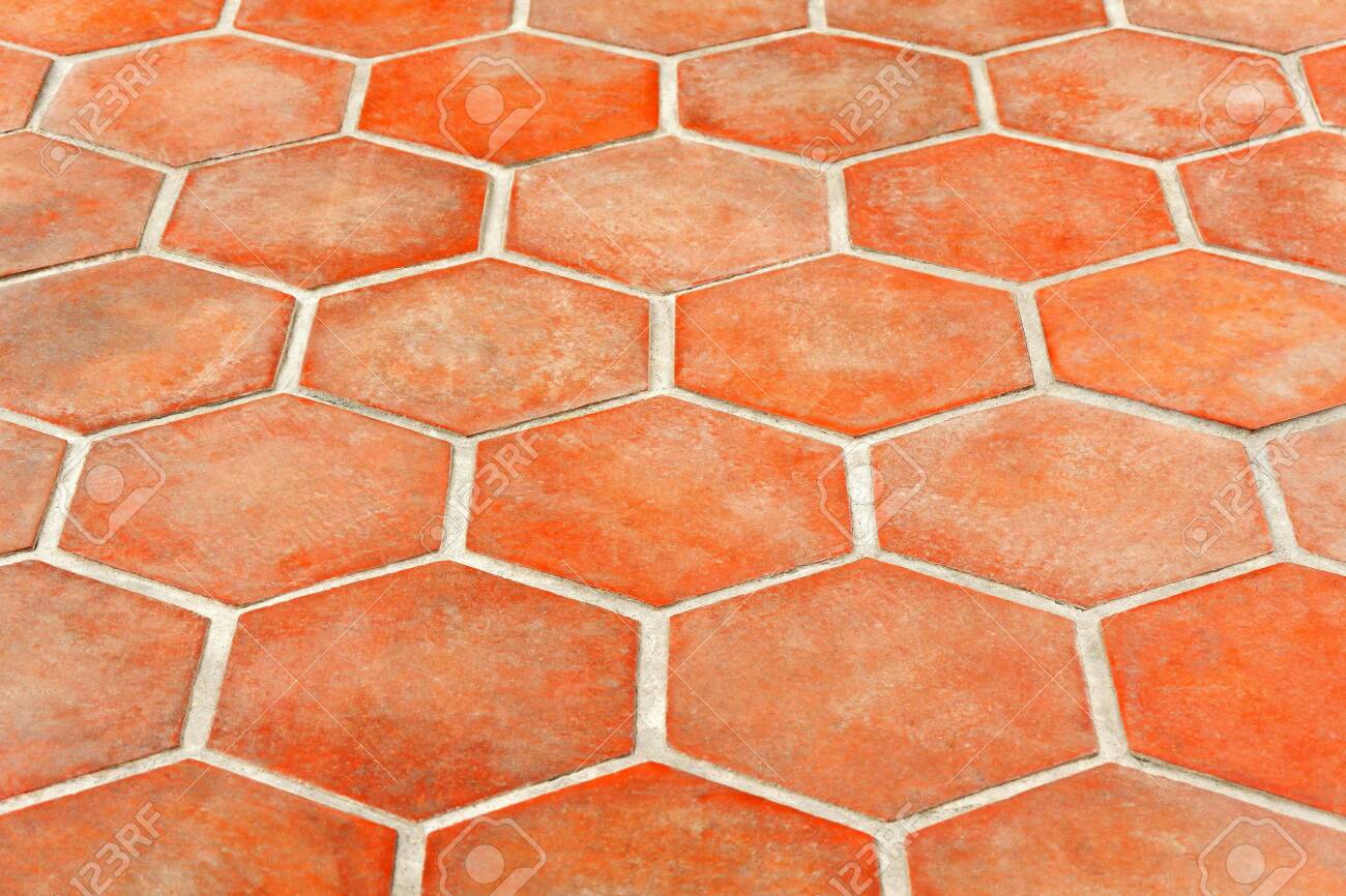 Dirty Tangerine Hexagon Terracotta Floor Tiles Stock Photo