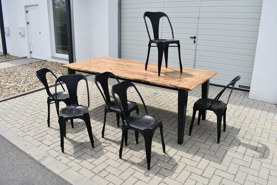 Style Tolix Stuhl Metall Und Dunkles Holz