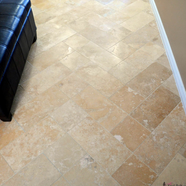 Silver Travertine Tile Herringbone Floor Tutorial Her Tool Belt