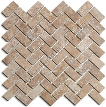Valencia Travertine Herringbone 1 X 2 Mosaic Tile Tumbled Lot Of 5