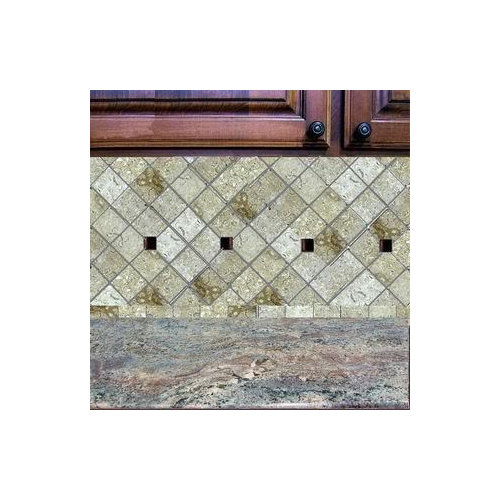 Accent Tumbled Stone Tile Backsplash With Glass Tile Accents