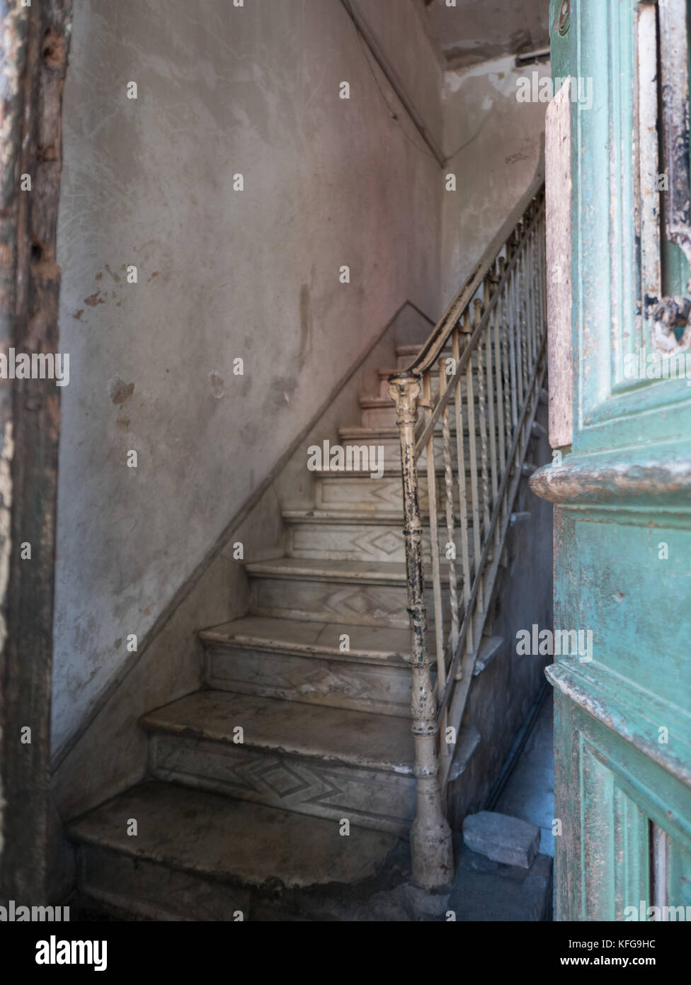 Old Dilapidated Moody White Dingy Staircase With Spindle Railing